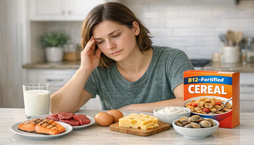 Καθώς η βιταμίνη Β12 βρίσκεται κυρίως σε ζωικές τροφές, η ισορροπημένη διατροφή παίζει τεράστιο ρόλο. Αν δεν έχεις ιατρικό περιορισμό, μπορείς να ανεβάσεις φυσικά τα επίπεδα, επιλέγοντας έξυπνα.
