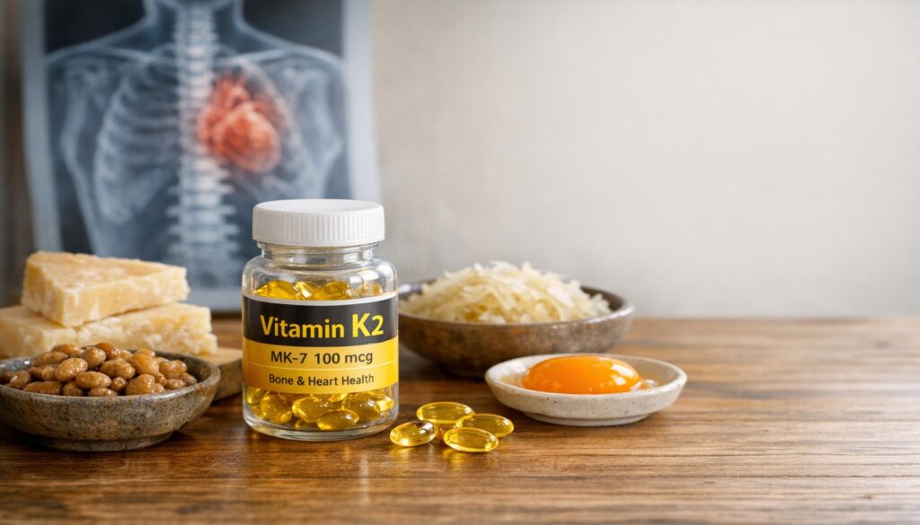 Η βιταμίνη Κ2 συνεργάζεται στενά με τη βιταμίνη D3. Η D3 βοηθά να απορροφήσεις το ασβέστιο από το έντερο, ενώ η βιταμίνη Κ2 φροντίζει να πάει στα οστά. Άρα, μαζί λειτουργούν σαν «ομάδα διανομής ασβεστίου» με ασφάλεια. Αν παίρνεις ήδη βιταμίνη D3 σε συμπλήρωμα, αξίζει να συζητήσεις με τον γιατρό σου για συνδυασμό με βιταμίνη Κ2. Έτσι, μπορείς να αυξήσεις τα οφέλη για τα οστά και, ταυτόχρονα, να μειώσεις τον κίνδυνο ανεπιθύμητης ασβεστοποίησης.