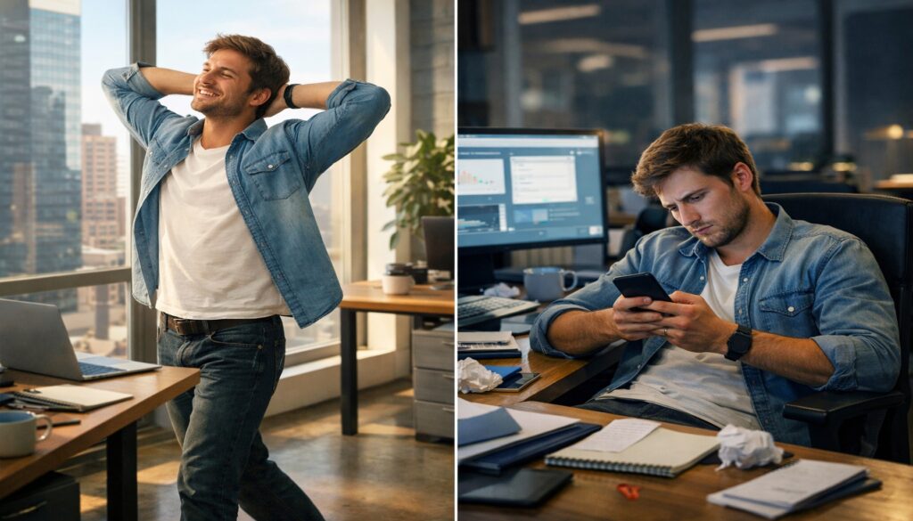Η διαχείριση στρες στη δουλειά έχει γίνει σχεδόν επιβίωση, όχι απλή δεξιότητα! Κάθε φορά που πιάνει φωτιά το inbox, βρίσκεσαι μπροστά σε δύο αυθόρμητες επιλογές: σηκώνεσαι για ένα μικρό ενεργό διάλειμμα ή ανοίγεις μηχανικά το κινητό για παθητικό scroll. Και οι δύο επιλογές “ξεκουράζουν” φαινομενικά. Ωστόσο, λειτουργούν εντελώς διαφορετικά στο σώμα, τον εγκέφαλο και τη μακροπρόθεσμη αντοχή σου στην πίεση. Παρακάτω θα δεις, με σαφήνεια και πρακτικά παραδείγματα, ποια στρατηγική αξίζει να γίνει το βασικό σου εργαλείο για διαχείριση στρες στη δουλειά!