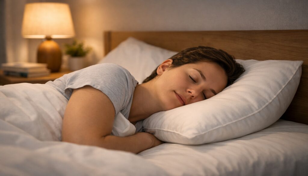 Στο πλάι, ο στόχος είναι πολύ συγκεκριμένος. Θέλεις ο αυχένας να συνεχίζει σε ευθεία γραμμή με την υπόλοιπη σπονδυλική στήλη. Επομένως, χρειάζεσαι μαξιλάρι μεσαίου προς ψηλού ύψους και σχετικά σκληρό για να μην “βουλιάζει”. Επιπλέον, βοηθά αν βάζεις ένα μικρό μαξιλάρι ανάμεσα στα γόνατα. Έτσι η λεκάνη μένει ευθυγραμμισμένη. Παρότι αυτό μοιάζει μικρή λεπτομέρεια, συχνά κάνει τεράστια διαφορά στον πόνο μέσης.