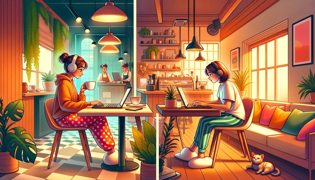 Η εργασία σε καφετέρια μπήκε για τα καλά στη ζωή μας και διεκδικεί σοβαρά την καρέκλα του σπιτιού! Αξίζει όμως να παρατήσεις πιτζάμα για τον διπλανό καπουτσίνο ή κρατάς γερά το γραφείο-σαλόνι; Σε αυτό το άρθρο συγκρίνω με χιούμορ και απόλυτη ειλικρίνεια τα υπέρ και τα κατά, ώστε να διαλέξεις το σκηνικό που ταιριάζει πραγματικά στην παραγωγικότητα και την ψυχική σου ηρεμία.
