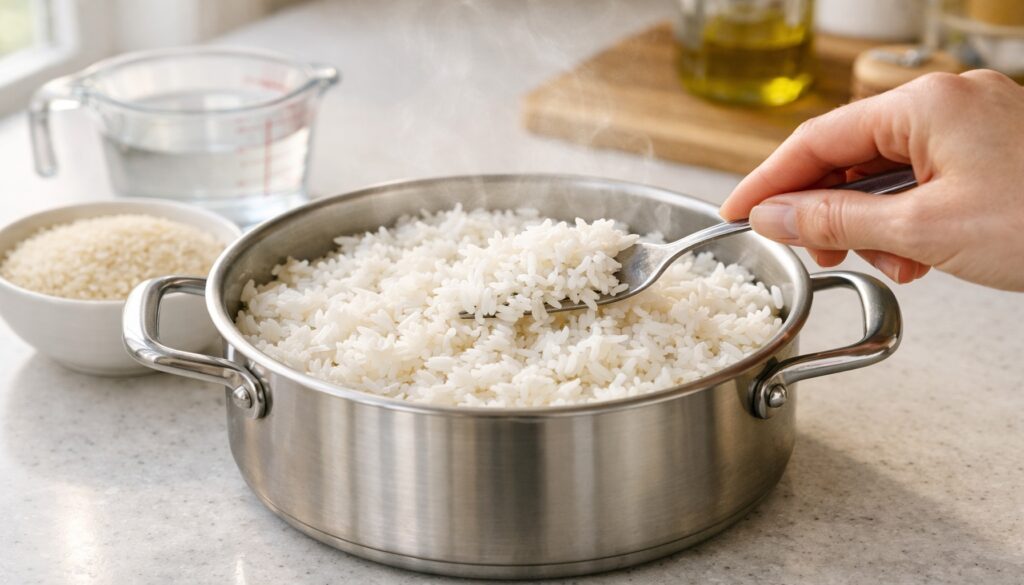 Τώρα πάμε στο πρακτικό κομμάτι. Ακολουθεί βήμα-βήμα διαδικασία για μακρύκοκκο λευκό ρύζι, που μπορείς όμως να προσαρμόσεις. Αν την εφαρμόζεις σταθερά, το μαγείρεμα ρυζιού θα γίνει από «ρουλέτα» σε εγγυημένο αποτέλεσμα.