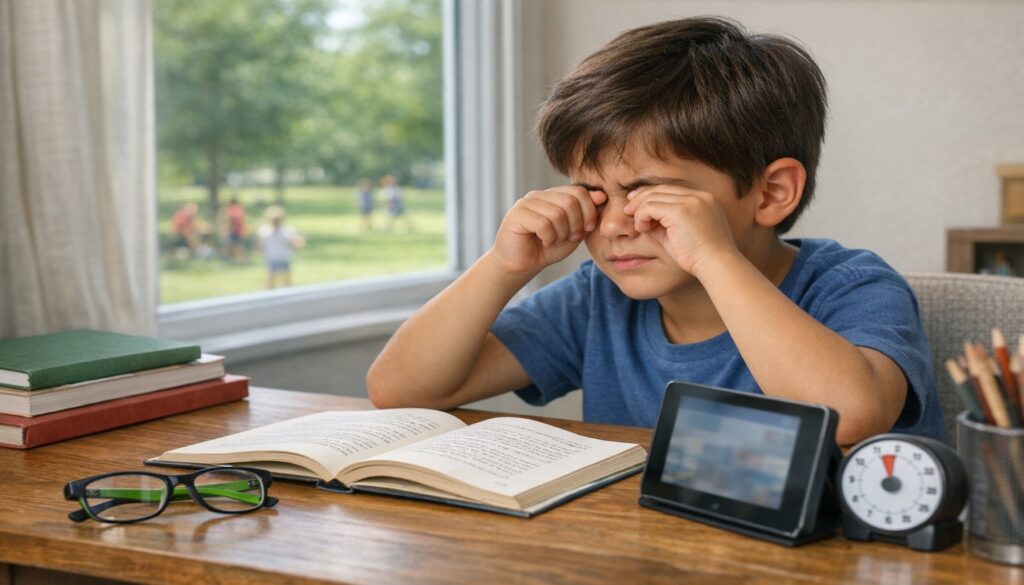 - Τρίβει συχνά τα μάτια ή δείχνει κουρασμένο όταν διαβάζει