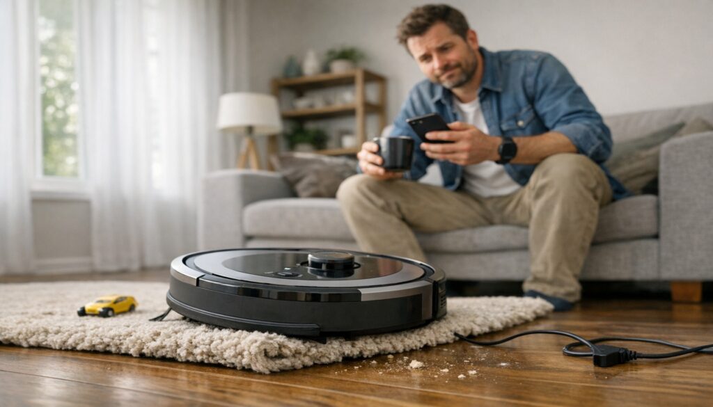 Πριν πατήσεις «start», ρίξε μια γρήγορη ματιά στο πάτωμα. Μάζεψε καλώδια, μικρά παιχνιδάκια, κάλτσες και σακούλες. Αυτή η μίνι ρουτίνα των δύο λεπτών αποτρέπει το 90% των «δραμάτων» της σκούπας ρομπότ. Επιπλέον, προγραμμάτισε την να δουλεύει ώρες που λείπεις ή που δεν σε ενοχλεί ο ήχος. Αν έχεις κατοικίδια που τρομάζουν, δοκίμασε την πρώτα όσο είσαι σπίτι, ώστε να δεις πώς αντιδρούν. Έπειτα, ρύθμισε ανάλογα.