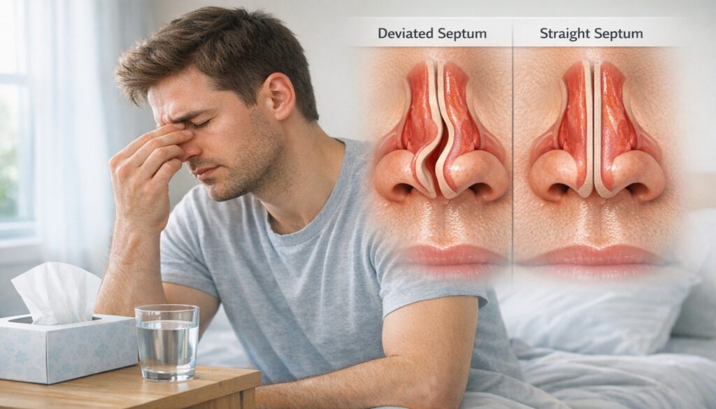 Το στραβό διάφραγμα μύτης μπορεί να κρύβεται πίσω από χρόνια βουλωμένη μύτη, ροχαλητό και ανεξήγητη κούραση. Πολλοί το θεωρούν «φυσιολογικό» να μην αναπνέουν καλά από τη μύτη, ωστόσο αυτό μπορεί να ρίχνει την ποιότητα ζωής σου κάθε μέρα. Έτσι, με λίγες στοχευμένες κινήσεις μπορείς να καταλάβεις τι συμβαίνει και να αναπνέεις ξανά ελεύθερα! Αρχικά, σε αυτό το άρθρο θα δεις τι ακριβώς σημαίνει στραβό διάφραγμα, ποια ύπουλα συμπτώματα προκαλεί και ποιες λύσεις υπάρχουν. Επιπλέον, θα μάθεις πότε αρκούν απλές καθημερινές παρεμβάσεις και πότε χρειάζεται αξιολόγηση από εξειδικευμένο ΩΡΛ. Έτσι θα νιώσεις σίγουρος για τα επόμενα βήματα για την υγεία σου. Φυσικά, καμία πληροφορία στο διαδίκτυο δεν αντικαθιστά την ιατρική εξέταση. Ωστόσο, αν γνωρίζεις τι μπορεί να σημαίνει μια σημαντική απόκλιση του διαφράγματος, φτάνεις στον ειδικό πιο προετοιμασμένος. Έτσι κερδίζεις χρόνο, μειώνεις το άγχος και παίρνεις καλύτερες αποφάσεις για τον εαυτό σου.