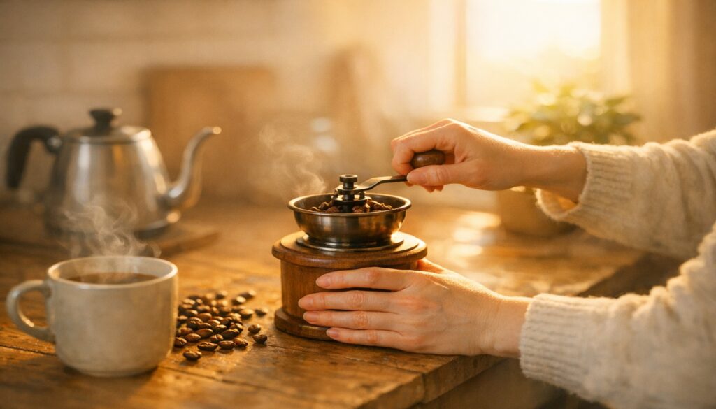 Χειροκίνητος μύλος καφέ και καθημερινή τελετουργία